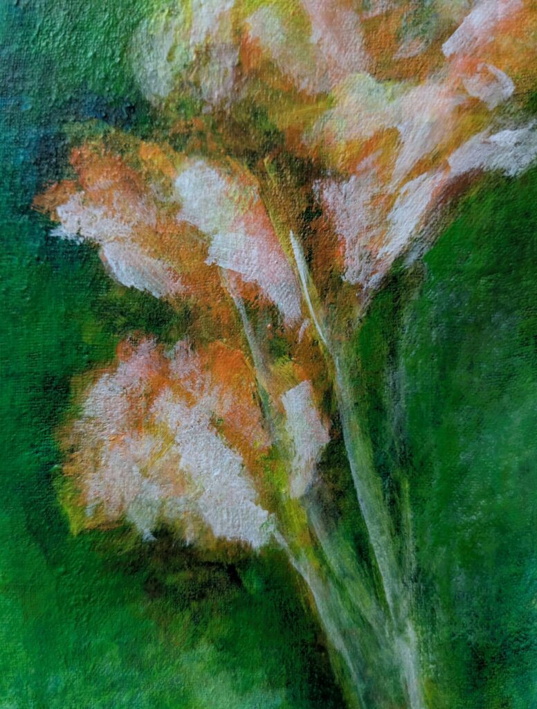 先日かき始めたアクリル画ですが、その後もゆっくりとかき進めています。
