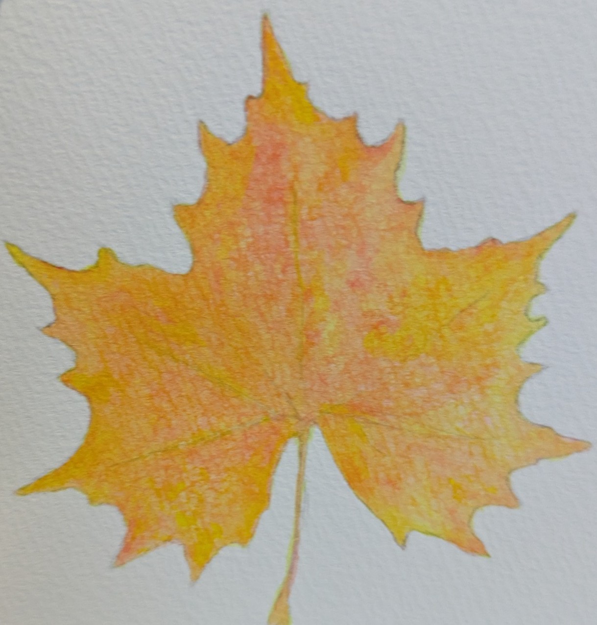 赤い色に紅葉した葉をアクリル絵の具でかきました。